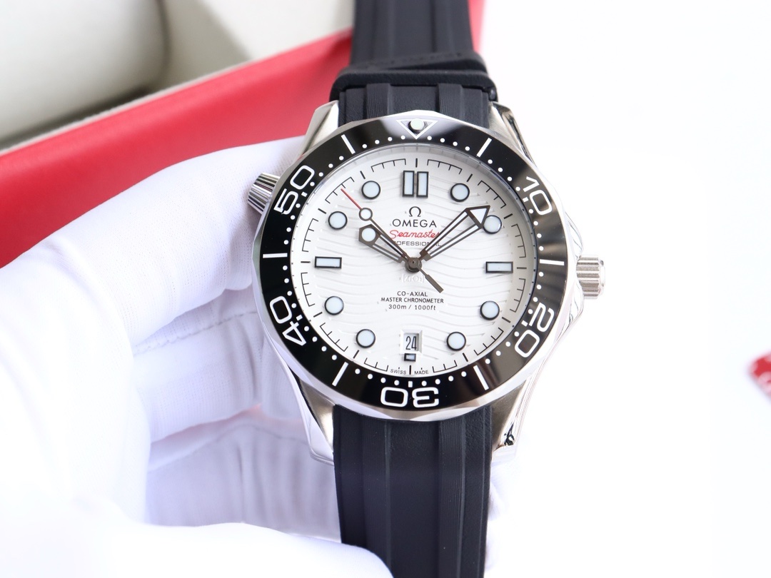 Omega Seamaster Diver 300M Co- Axial 212.30.41.20.03.0011-white dial and Black pazel&Rubber strap replica