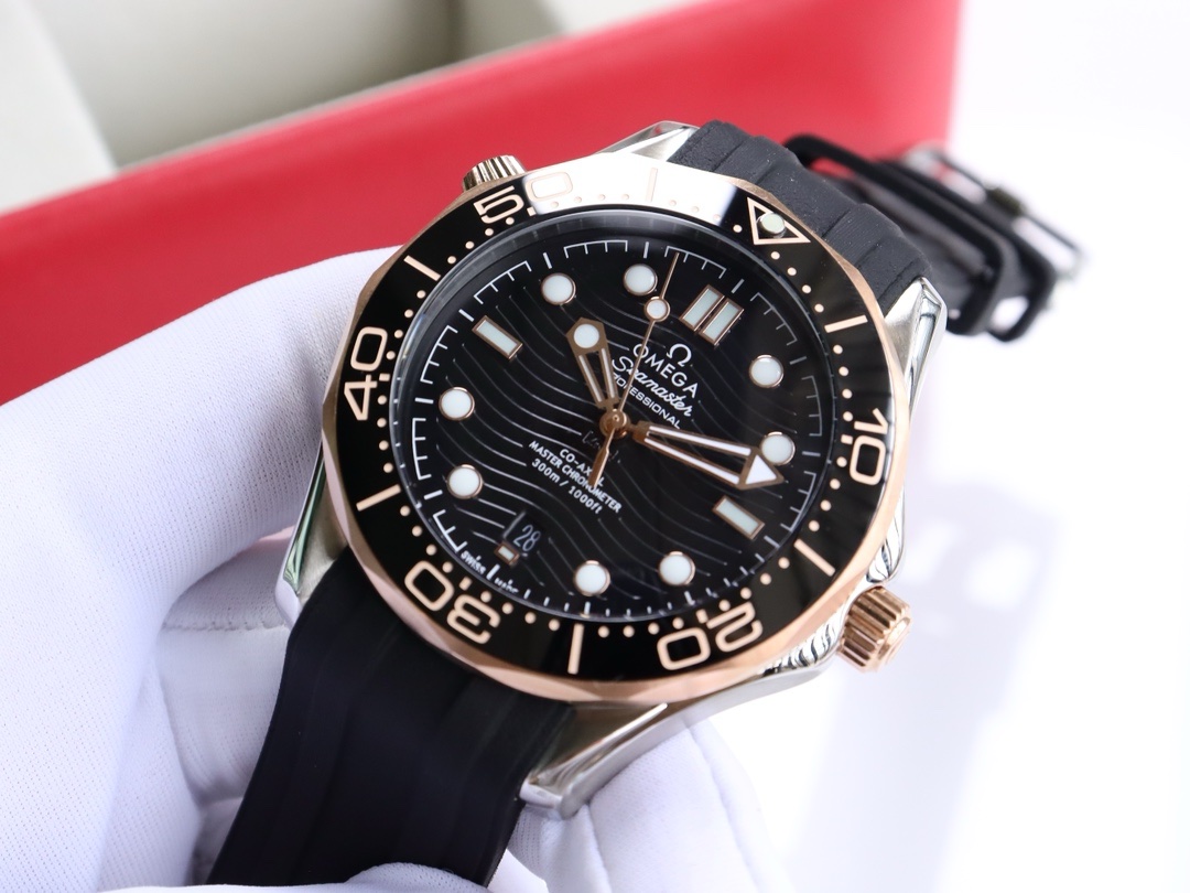 Omega Seamaster Diver 300M Co- Axial 212.30.41.20.03.001 -Black dial and Rose gold case&Rubber strap replica