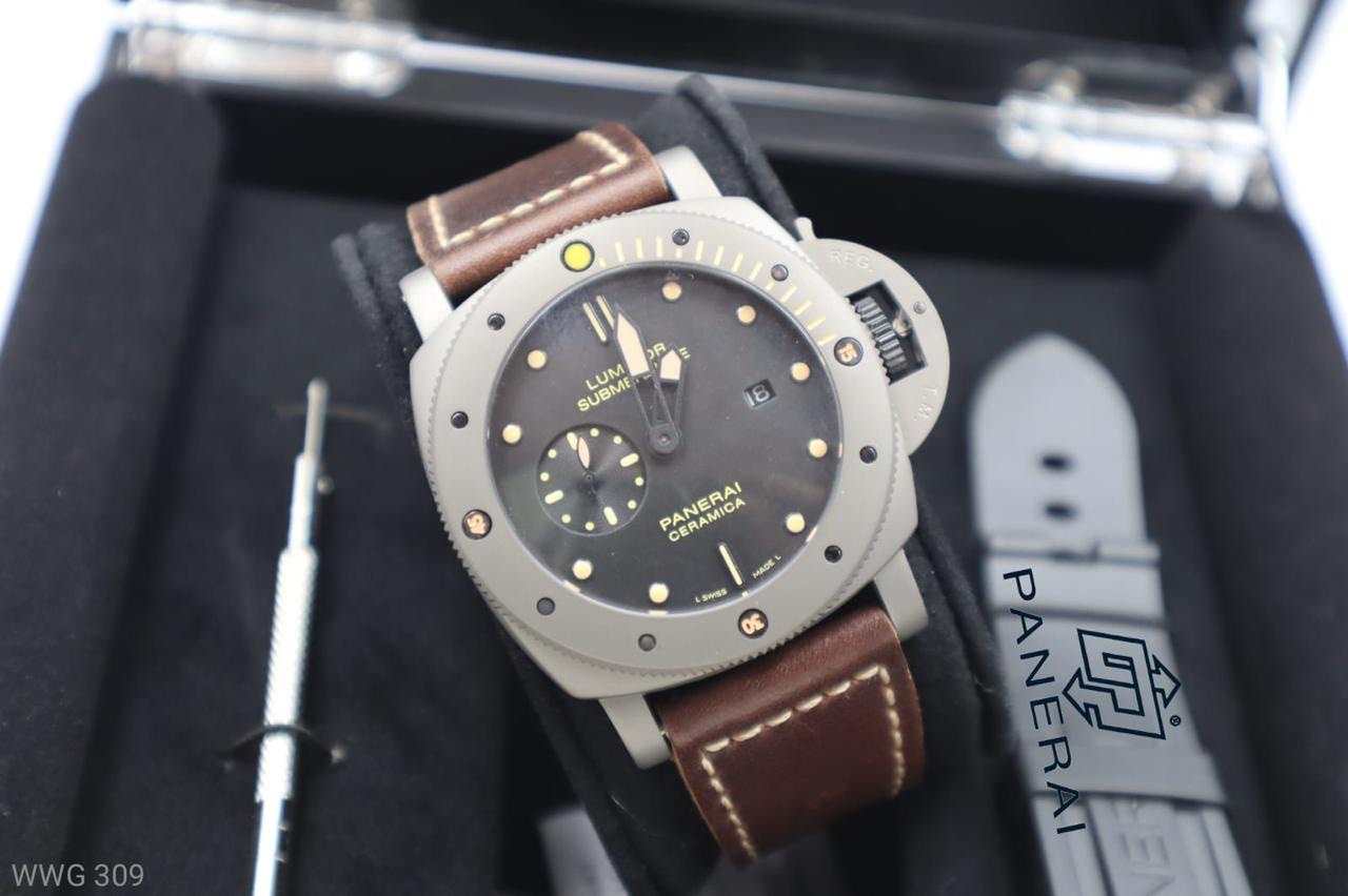 • Strap: Calf leather strap, plus an additional black FKM rubber strap from Panerai, ideal for water activities.