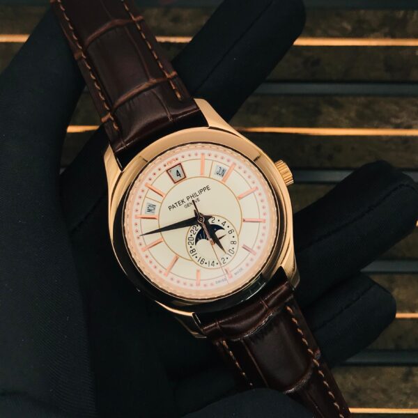 If you’re looking for a timepiece that combines luxury design with precision craftsmanship at an affordable price, the Patek Philippe Annual Calendar Chronograph (Replica) is the ideal choice. With its refined design, water resistance, and nighttime illumination, you’ll stand out at every occasion. Additionally, the comprehensive annual calendar, which includes the day, date, and month, and the chronograph function bring a touch of modern sophistication. Presented in a luxury box and elegant bag, this watch is an investment worth making.