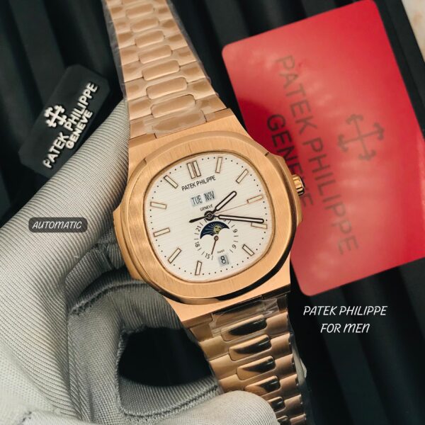 Patek Philippe Nautilus Calendar 40mm white Dial” rose gold (Replica)