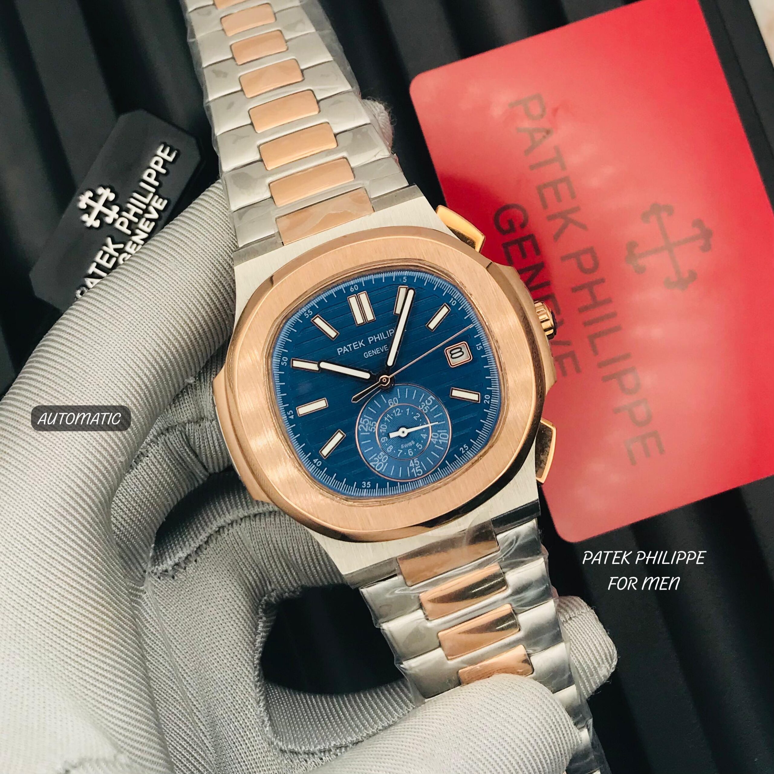 The watch comes with a luxury box and an elegant bag, making it the perfect gift or a stylish addition to your personal collection. This remarkable replica faithfully mirrors the fine details and elegant design that you’d expect from Patek Philippe.