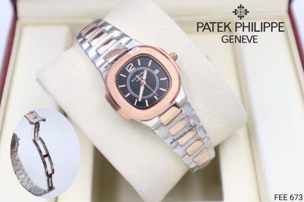ساعة باتيك فيليب ناتيلوس، قياس 31 مم، هي قطعة فنية تجمع بين الأناقة والوظائف العملية. تتميز هذه الساعة بإطار داخلي يزيد من جمالية التصميم، مما يجعلها تبرز بين الموديلات الأخرى. السوار المعدني مصنوع من الستيل المقاوم للصدأ، مما يضمن لك المتانة والراحة في الاستخدام اليومي. تأتي الساعة بإضاءة ليلية عند الرقم 12، مع أحرف وأرقام مضيئة، مما يسهل قراءتها في الظلام. تشمل وظائف التعقيد عرض التاريخ والساعات والدقائق والثواني، بالإضافة إلى تقويم شامل. هي أيضاً مقاومة للماء، مما يجعلها مثالية للاستخدام في مختلف الظروف. تأتي مع ضمان كامل لمدة عام، مع كافة المرفقات الضرورية. هذه الساعة تقليد عالية الجودة تجسد روح التصميم الأصيل والأداء المتميز.