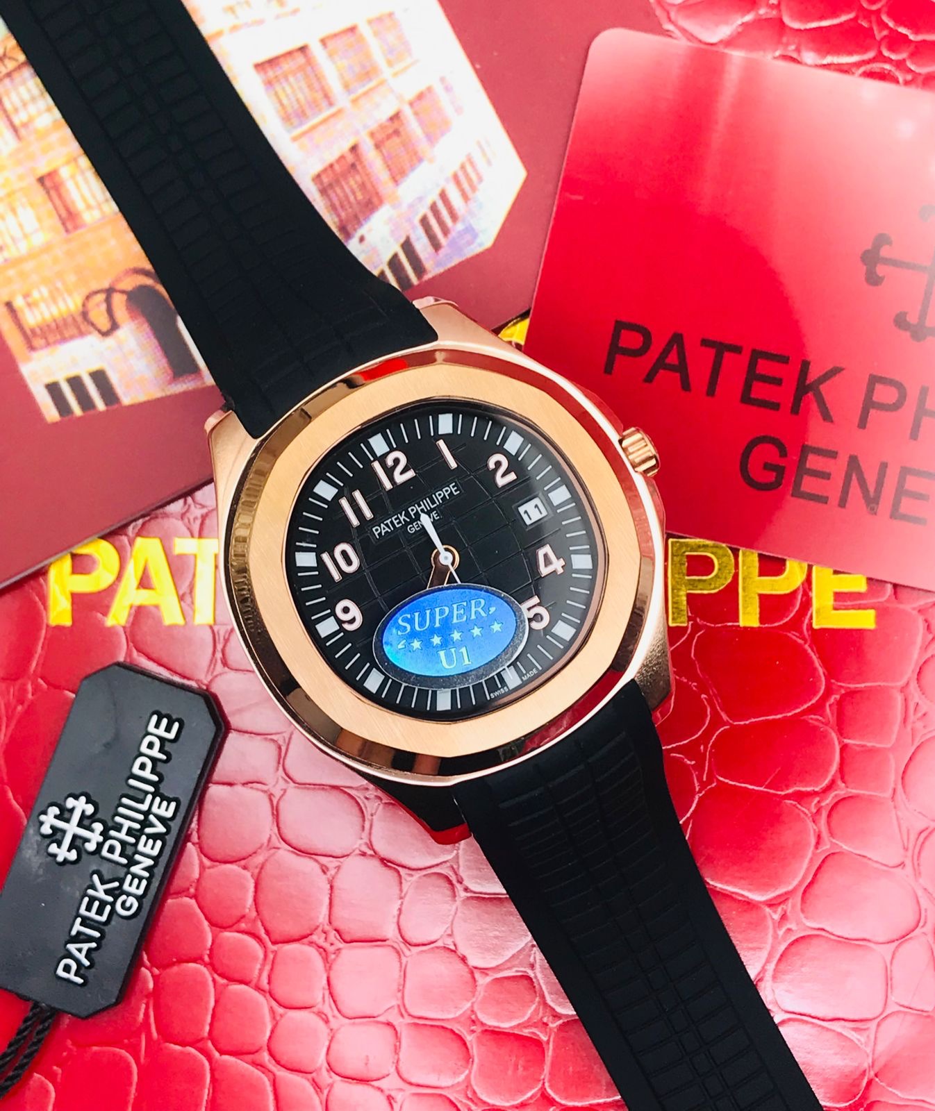 Patek Philippe,Aquanaut black dial rose gold bezel