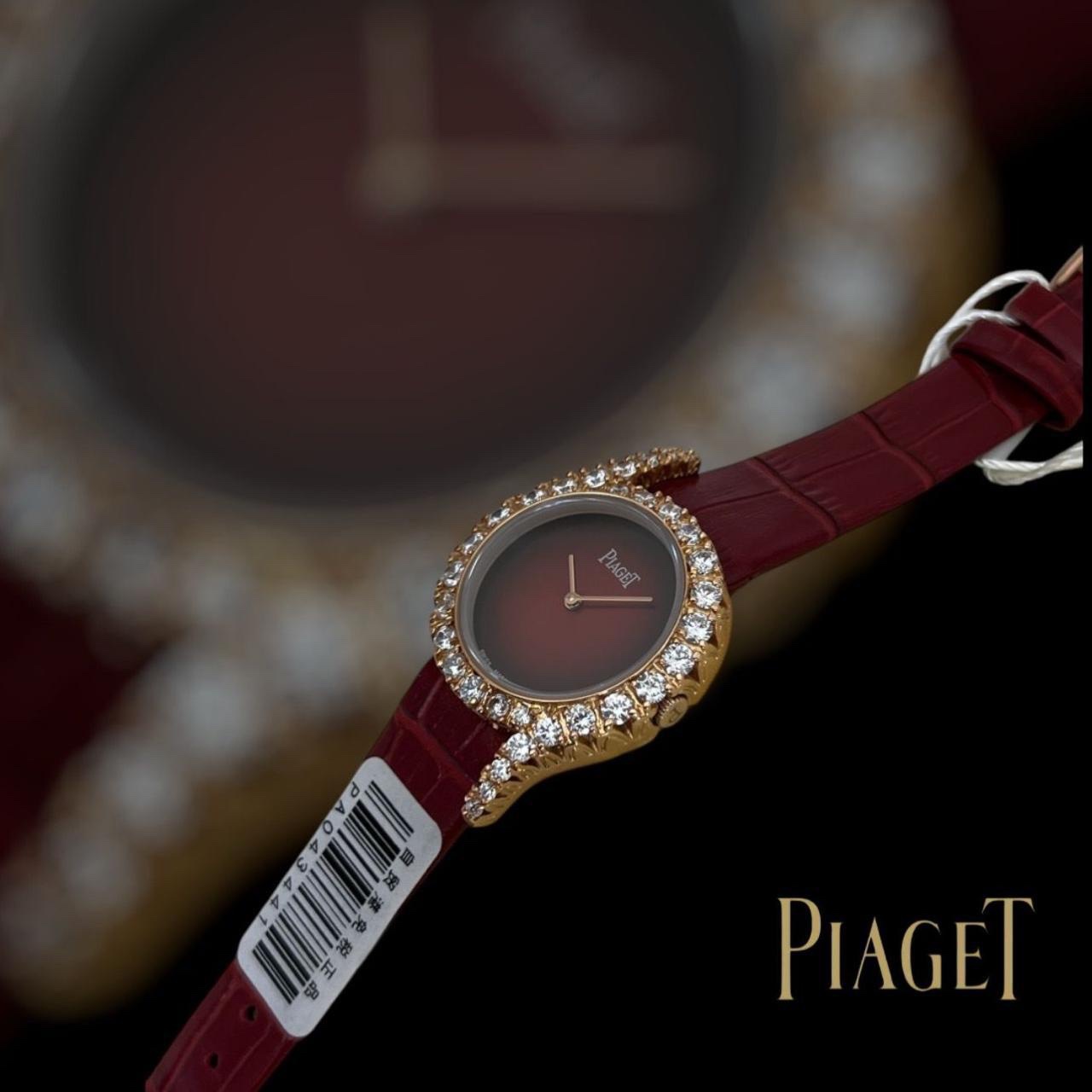 “ساعة Piaget Gala بمقاس 32 ملم، إصدار تقليد فاخر يجمع بين الأناقة والتفاصيل المتقنة. تتميز الساعة بطوق مرصع بالأحجار، وسوار جلدي أنيق، بالإضافة إلى مقاومتها للماء، لتكون خيارًا عمليًا وجذابًا في آنٍ واحد. لا تترددي في إضافة هذه التحفة الفنية إلى مجموعتك وإبراز ذوقك الرفيع في كل مناسبة. تأتي الساعة مع صندوق وكيس فاخرين،