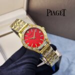 This elegant replicaPiaget women’s watch, measuring 31mm, features numerals adorned with synthetic stones, adding a touch of luxury. The bezel is decorated with sparkling stones for an added brilliance. The watch operates with a precise Quartz 301 movement, ensuring high accuracy.