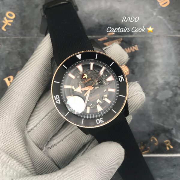 Be the first to review “Rado Captain Cook,Rose Gold case Skeleton Black Rubber Strap (Replica)”