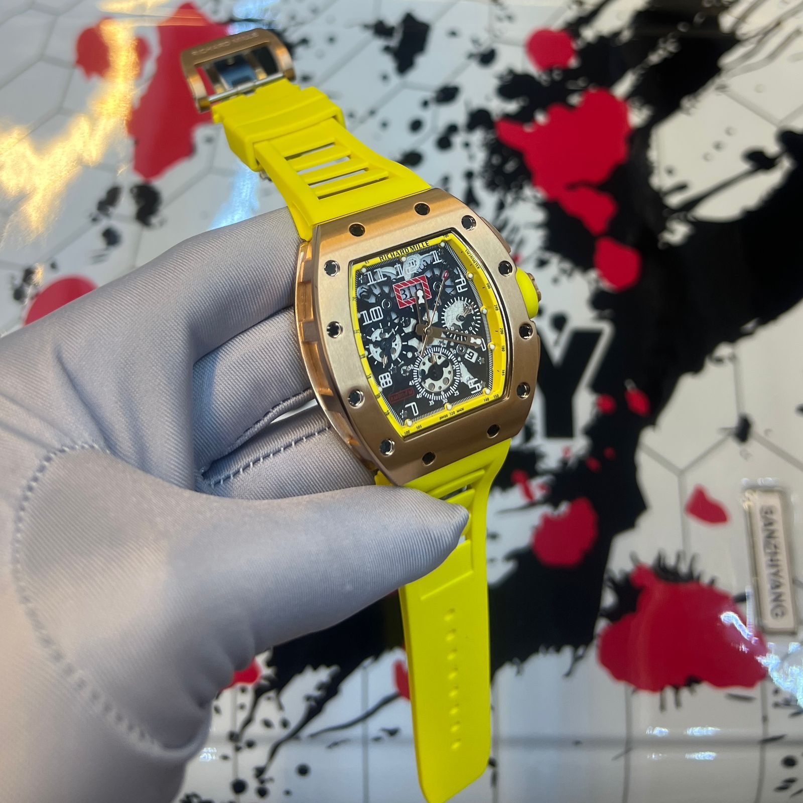 Richard Mille RM 011 Felipe Massa Chronograph – Replica Yellow Bezel / Yellow Rubber Strap / Rose Gold Case