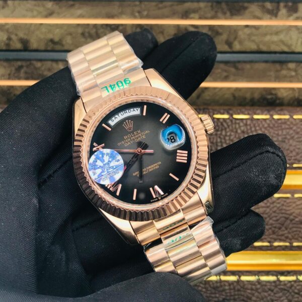 اسم الطراز: Rolex D-Date (تقليد) – مينا أردواز أومبري وستيل بلون روز جولد