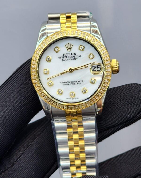 Shine with a luxurious look with the Rolex Datejust (REPLICA) women’s watch, combining elegance and high quality. This watch comes with a 31mm case and features sapphire glass for added protection and brilliance.