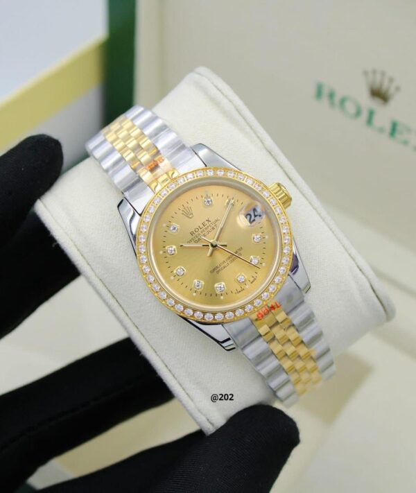 Shine with a luxurious look with the Rolex Datejust (REPLICA) women’s watch, combining elegance and high quality. This watch comes with a 31mm case and features sapphire glass for added protection and brilliance.