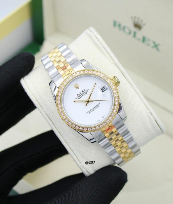 Shine with a luxurious look with the Rolex Datejust (REPLICA) women’s watch, combining elegance and high quality. This watch comes with a 31mm case and features sapphire glass for added protection and brilliance.