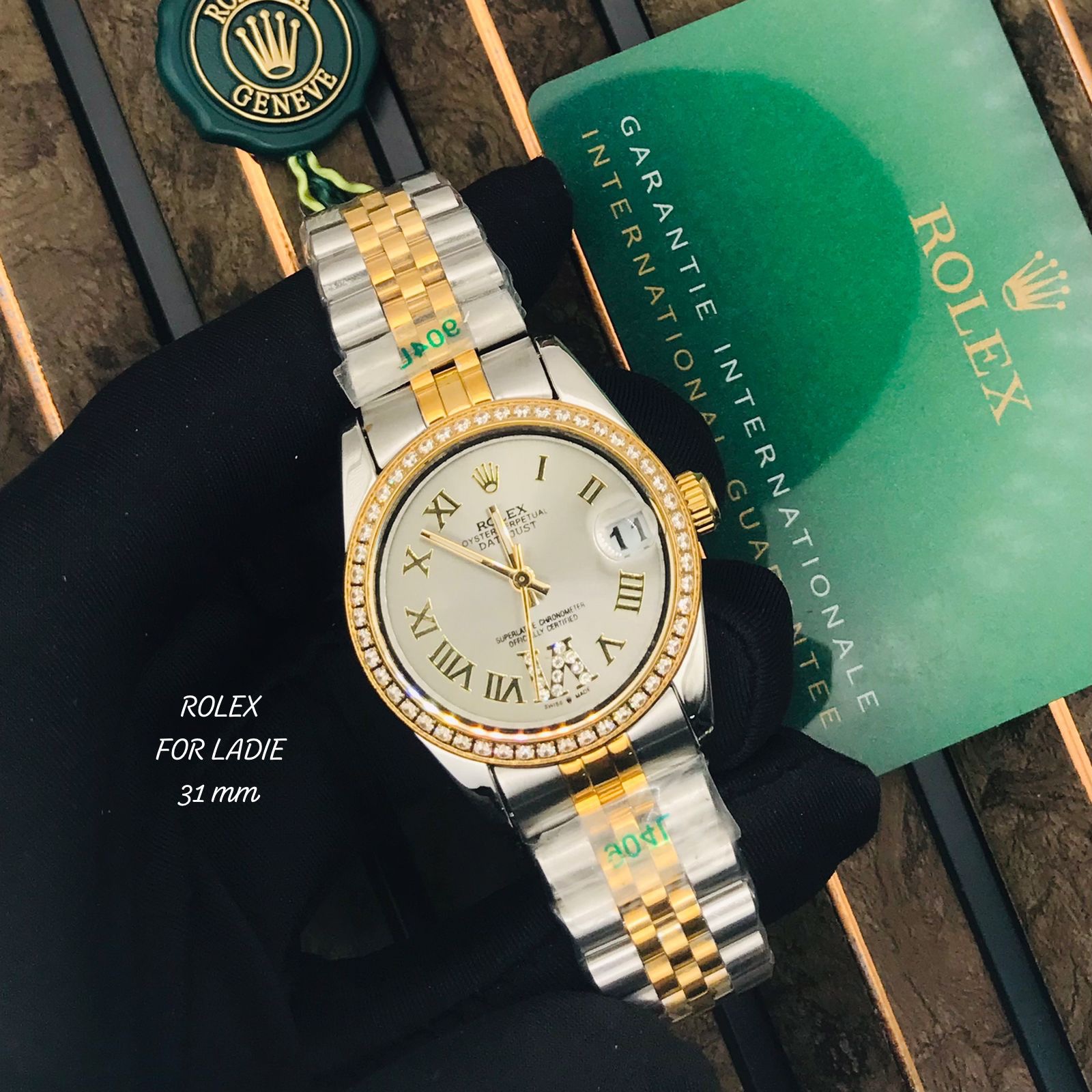 تألق بإطلالة فاخرة مع ساعة Rolex Datejust (REPLICA) النسائية، التي تجمع بين الفخامة والجودة العالية. تأتي هذه الساعة بقطر 31 ملم وتتميز بزجاج من الياقوت لمزيد من الحماية واللمعان.