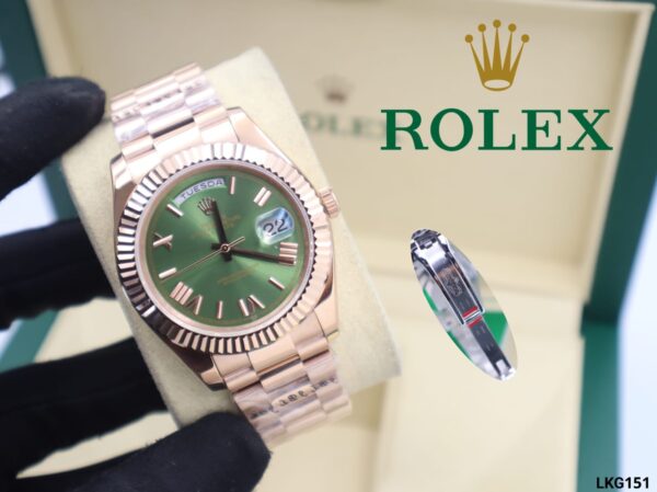 ROLEX DAY-DATE, ROSE GOLD, GREEN DIAL ROMAN NUMERALS, REPLICA