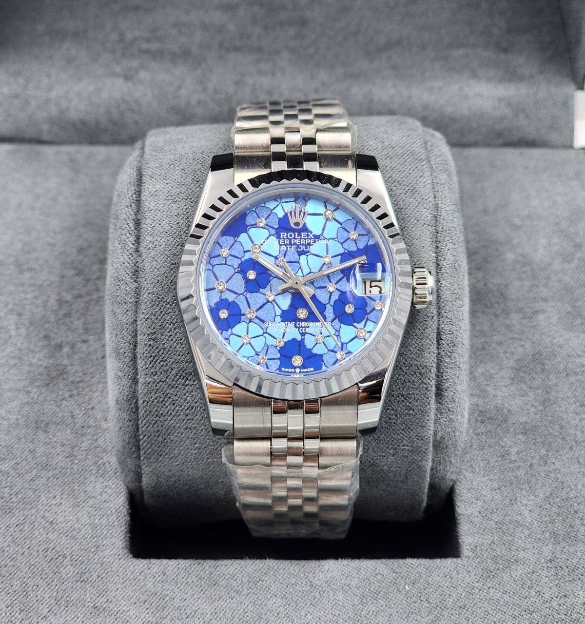 **Rolex Digest 31mm (Replica)** Floral dial with stones.