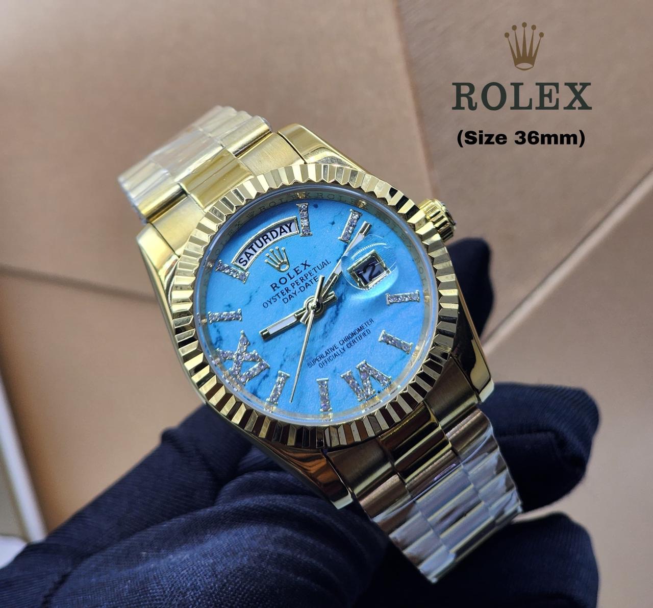 The Rolex Day-Date watch stands out with its exquisite beauty and distinctive elegance. With a diameter of 36mm, this watch offers a perfect design that suits various tastes.