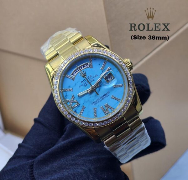 The Rolex Day-Date watch stands out with its exquisite beauty and distinctive elegance. With a diameter of 36mm, this watch offers a perfect design that suits various tastes.