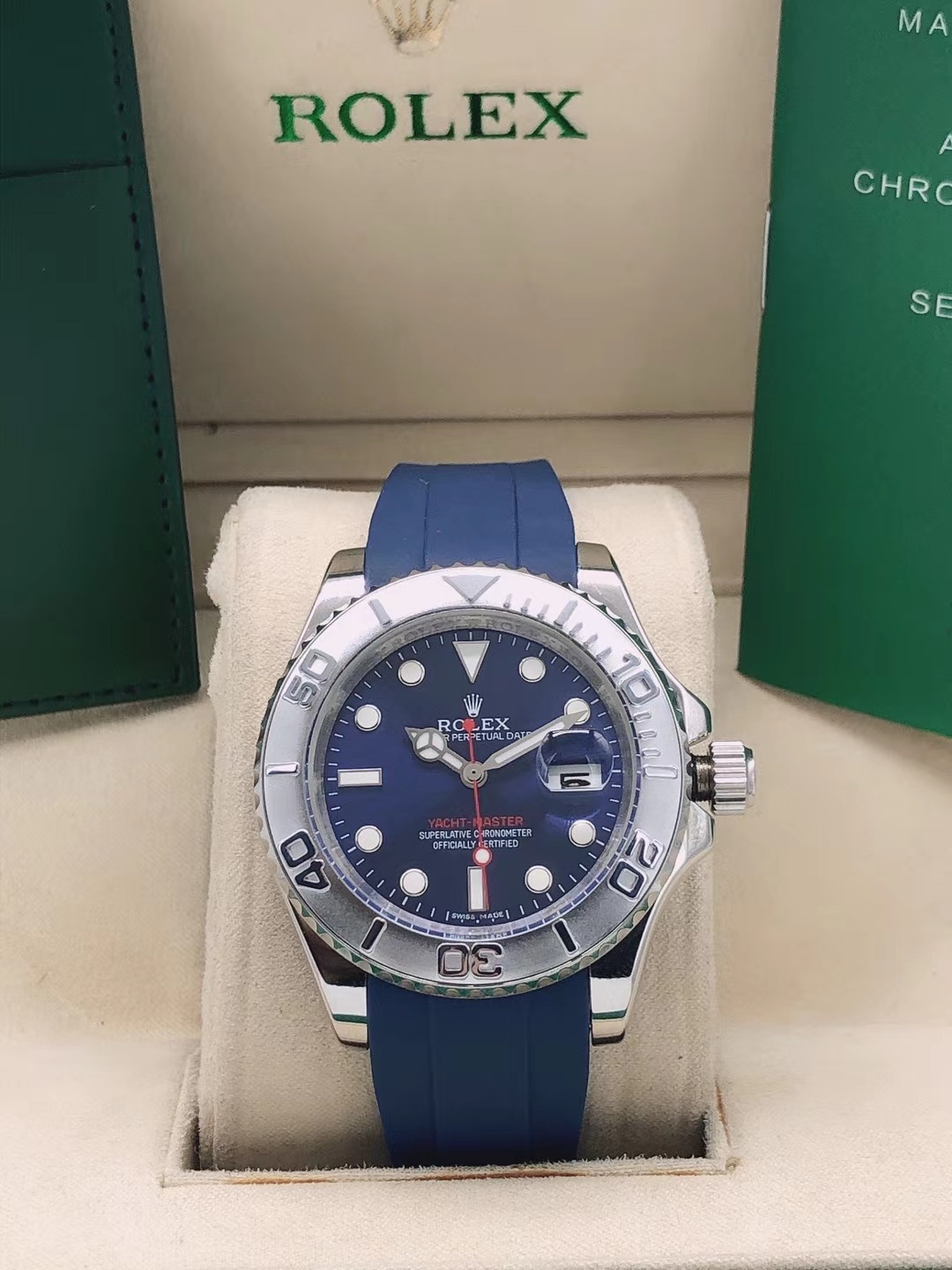 The user owns a high-quality replica Rolex Yacht-Master with the following features: