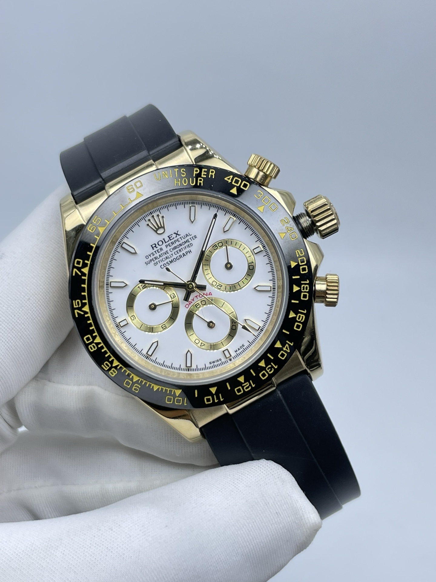 The user has a high-quality replica Rolex Daytona watch with the following features: