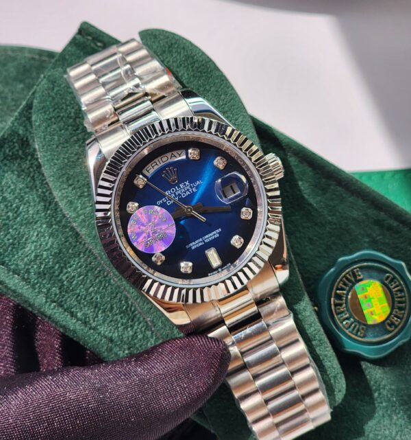This replica Rolex D-Date offers a luxurious, modern style, featuring a range of stunning dial color choices and refined steel accents. Despite being a replica, it retains essential functions and a sophisticated design, making it an ideal choice for those who appreciate elegance and quality at an affordable price.