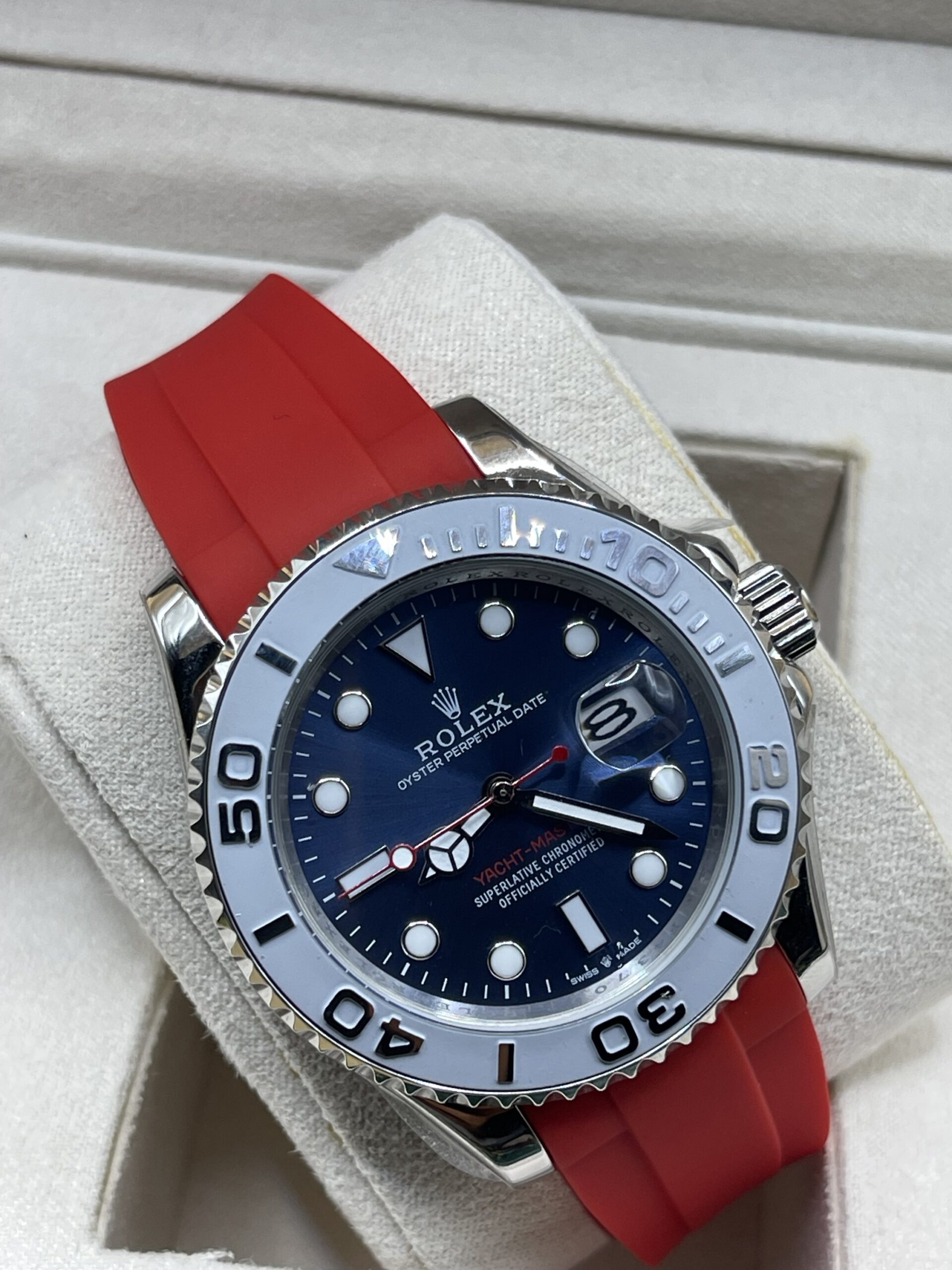 ROLEX,YACHT-MASTER blue dial,red drubber strap