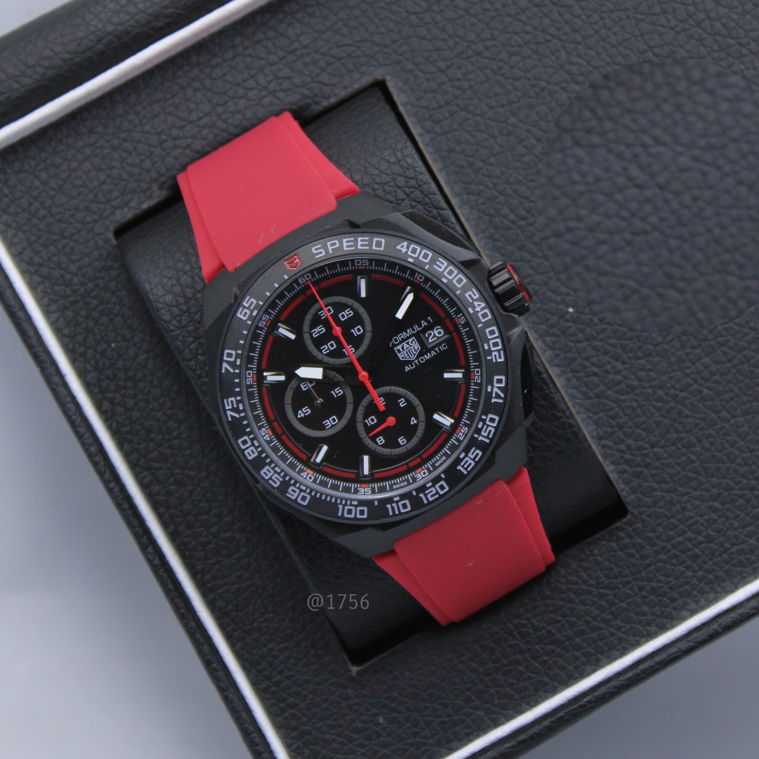TAG HEUER FORMULA 1 CHRONOGRAPH X ORACLE – 44mm (Replica) – Black Dial & Red Strap with Red Hands