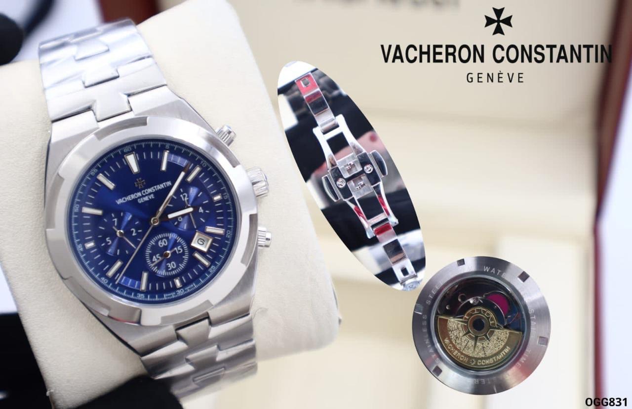 ساعة Vacheron Constantin Overseas تأتي بقياس 41 ملم، وتتميز بتصميم رياضي وأنيق مصنوع بالكامل من الفولاذ المقاوم للصدأ، مما يضفي عليها لمسة من المتانة والفخامة. الإطار الأيقوني مزود بثمانية جوانب مستوحاة من التصميمات الهندسية الراقية، مع مينا مزودة بعقارب مضيئة ومؤشرات بارزة لسهولة قراءة الوقت.