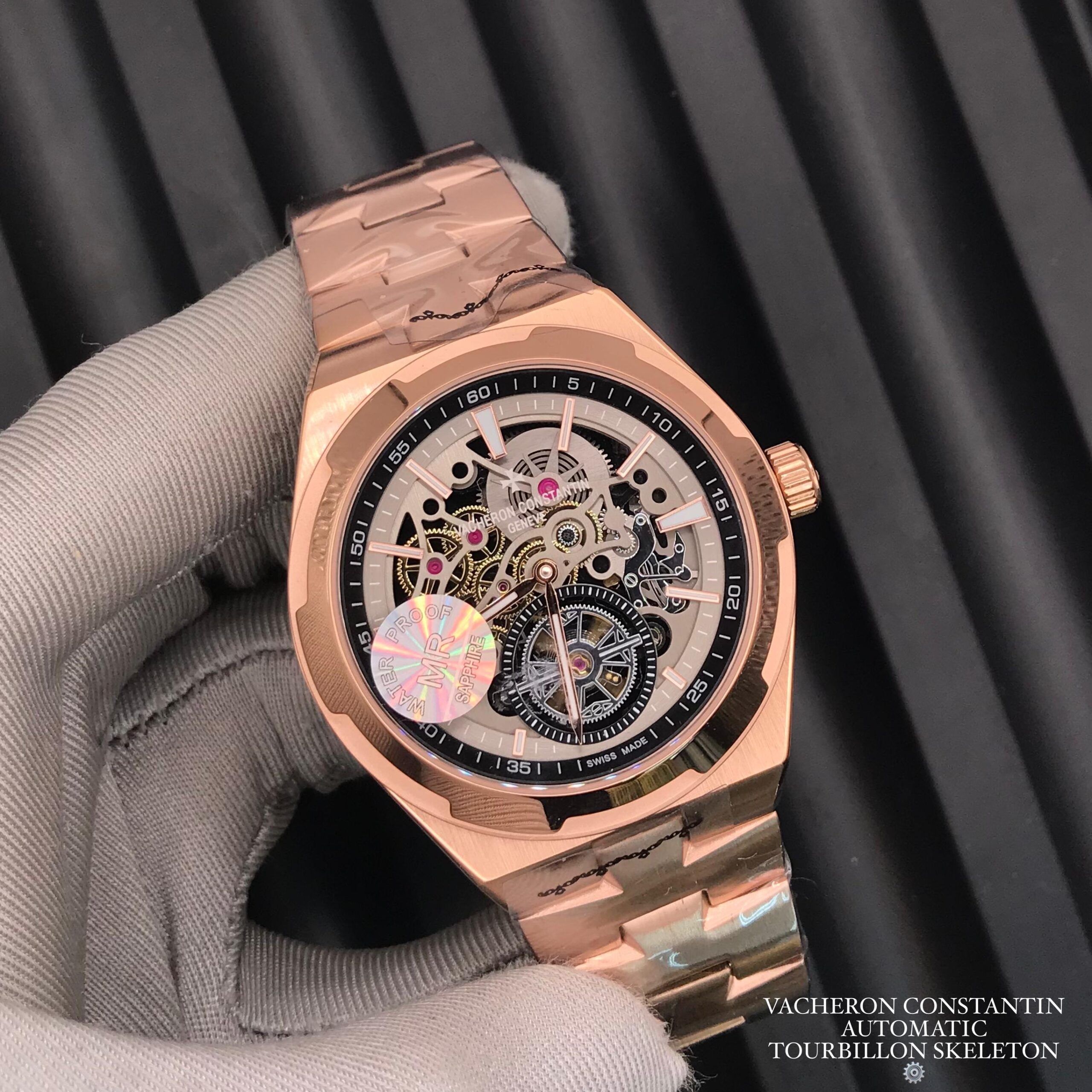 Vacheron Constantin Overseas Replica – 41mm with Rose Gold Black Skeleton Dial and Tourbillon